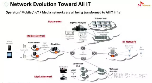 Choi博士在演講中提到,未來電信網(wǎng)絡(luò)將向全I(xiàn)T化轉(zhuǎn)型,這是一次對傳統(tǒng)電信網(wǎng)絡(luò)的重構(gòu)。