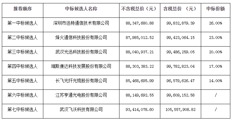 湖北移動公示開放式波分復(fù)用設(shè)備集采中標(biāo)候選人:迅特獲最高份額