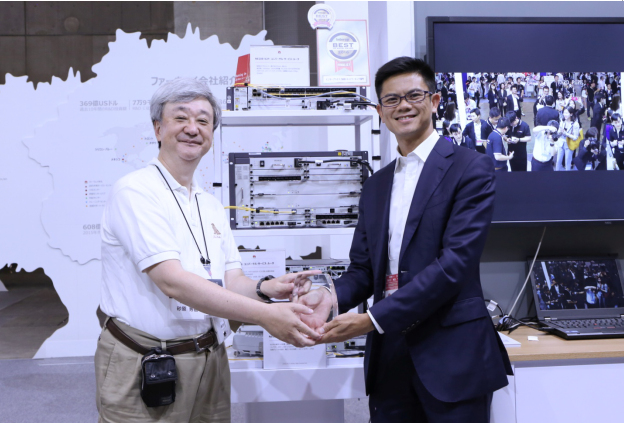 圖2:Interop執(zhí)行委員會(huì)向華為日本株式會(huì)社社長(zhǎng)王劍峰頒發(fā)IP硬管道解決方案Interop金獎(jiǎng)