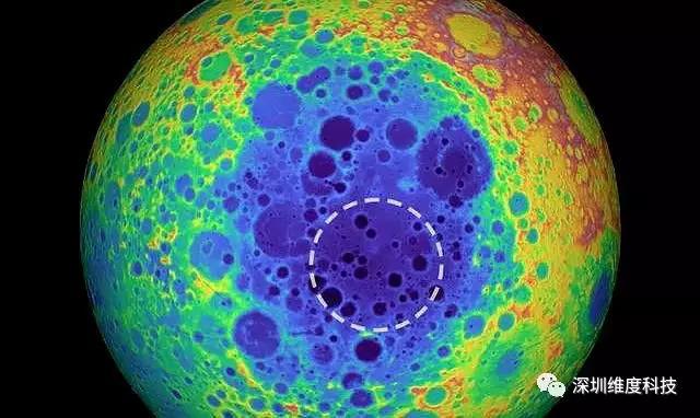 這個(gè)火山口本身是橢圓形的,寬2000公里,大約是德克薩斯州韋科和華盛頓特區(qū)之間的距離,幾英里(1英里=1.6千米)深。盡管它的規(guī)模巨大,但我們還是不能從地球上看到它,因?yàn)樗挥谠虑虻倪h(yuǎn)端。