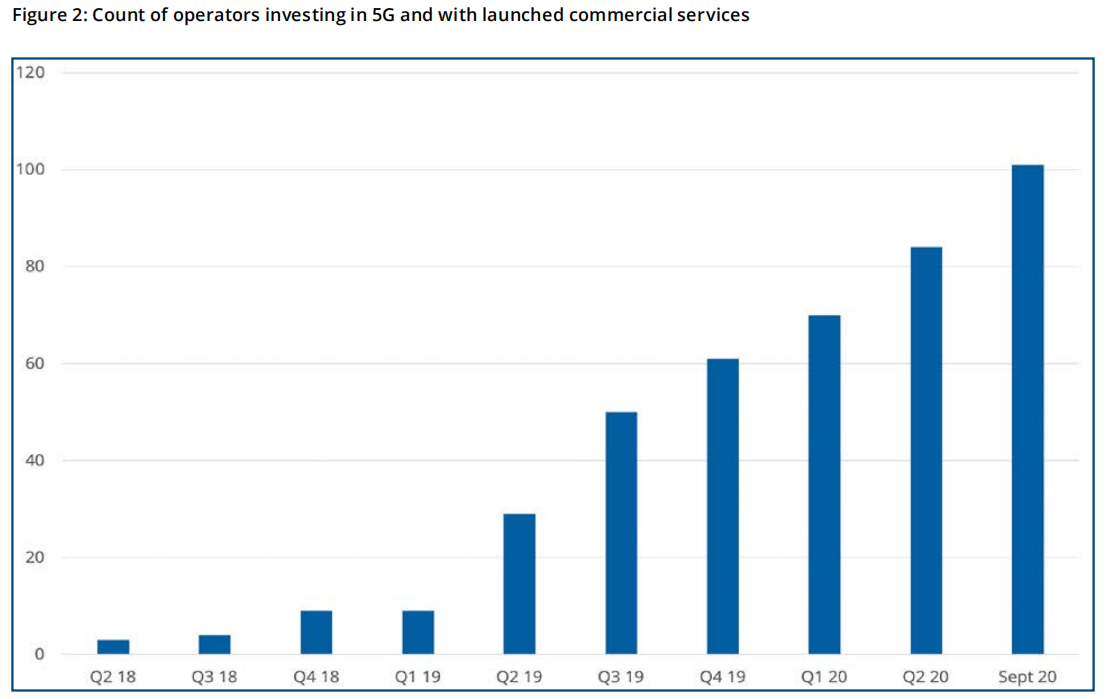 9家運營商宣布推出了有限可用的5G服務或者試商用服務,這些都沒有統(tǒng)計在上述商用網(wǎng)絡數(shù)字中。