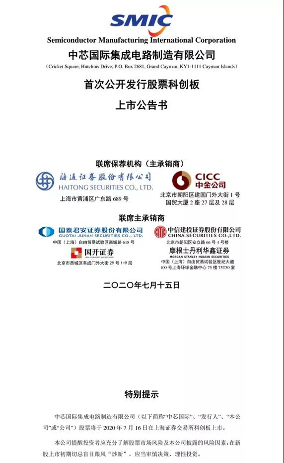 ICC訊 14日晚間,中芯國(guó)際公告稱,公司股票將于2020年7月16日在上海證券交易所科創(chuàng)板上市。