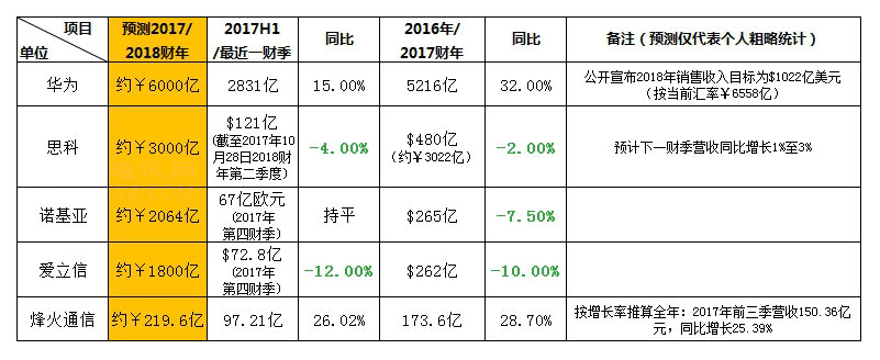 ICCSZ訊(編輯:Debi)雞年即將過去,隨著春節(jié)假期的臨近,各大城市的年味也愈濃了,不知即將到來的狗年,通信產(chǎn)業(yè)會(huì)不會(huì)更加旺呢?當(dāng)然是期待啦!話不多說,繼續(xù)補(bǔ)充設(shè)備、運(yùn)營(yíng)產(chǎn)業(yè)鏈主流企業(yè)的營(yíng)收情況,對(duì)比發(fā)現(xiàn),大有大的難處,誰(shuí)的成績(jī)不是一路拼搏撕殺來的?