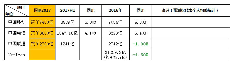 這里主要統(tǒng)計(jì)國(guó)內(nèi)三大運(yùn)營(yíng)商,列入Verizon的2016年?duì)I收主要是為了表達(dá)“全世界的運(yùn)營(yíng)商都很有錢”的意思。當(dāng)然,運(yùn)營(yíng)商有錢是一回事,具體收入多少其實(shí)對(duì)光通信產(chǎn)業(yè)而言,純看收入數(shù)字的話并無太多信息,主要關(guān)注的還是運(yùn)營(yíng)商的資本支出,這又是一個(gè)大話題了,術(shù)業(yè)有專攻,此處不展開討論,姑且只看其收入,做到“心中有數(shù),心里不慌”。