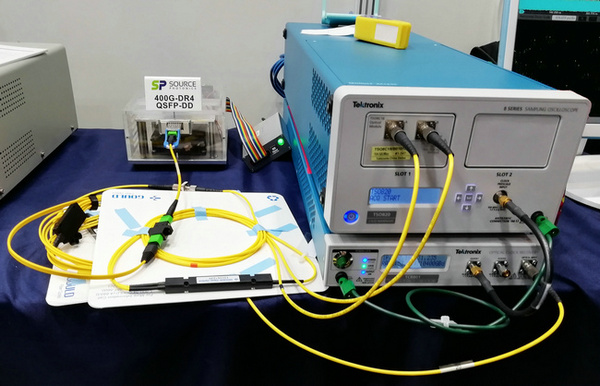 本次光博會(huì),泰克科技亮點(diǎn)產(chǎn)品是最新400G PAM4測(cè)試方案,該方案采用全新一代光采樣示波器TSO820和CDR時(shí)鐘恢復(fù)模塊TCR801,可以高效提升400G PAM4模塊生產(chǎn)測(cè)試能力與效率。據(jù)泰克科技專家周英航介紹,公司攜手索爾思光電共同進(jìn)行最新400G PAM4測(cè)試方案的實(shí)時(shí)演示,整套演示基于400G DR4光模塊,可實(shí)現(xiàn)四路通道信號(hào)輸出,單通道可到53.125GBaud PAM4信號(hào)和100G比特率。