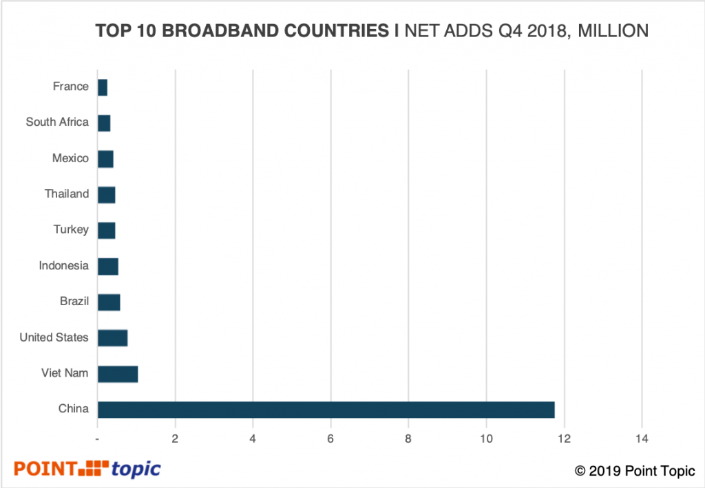 Q418全球固網(wǎng)寬帶用戶增長2.02%達(dá)10.27億