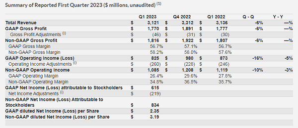 - 營(yíng)收31.2億美元,同比微幅下滑0.5%。