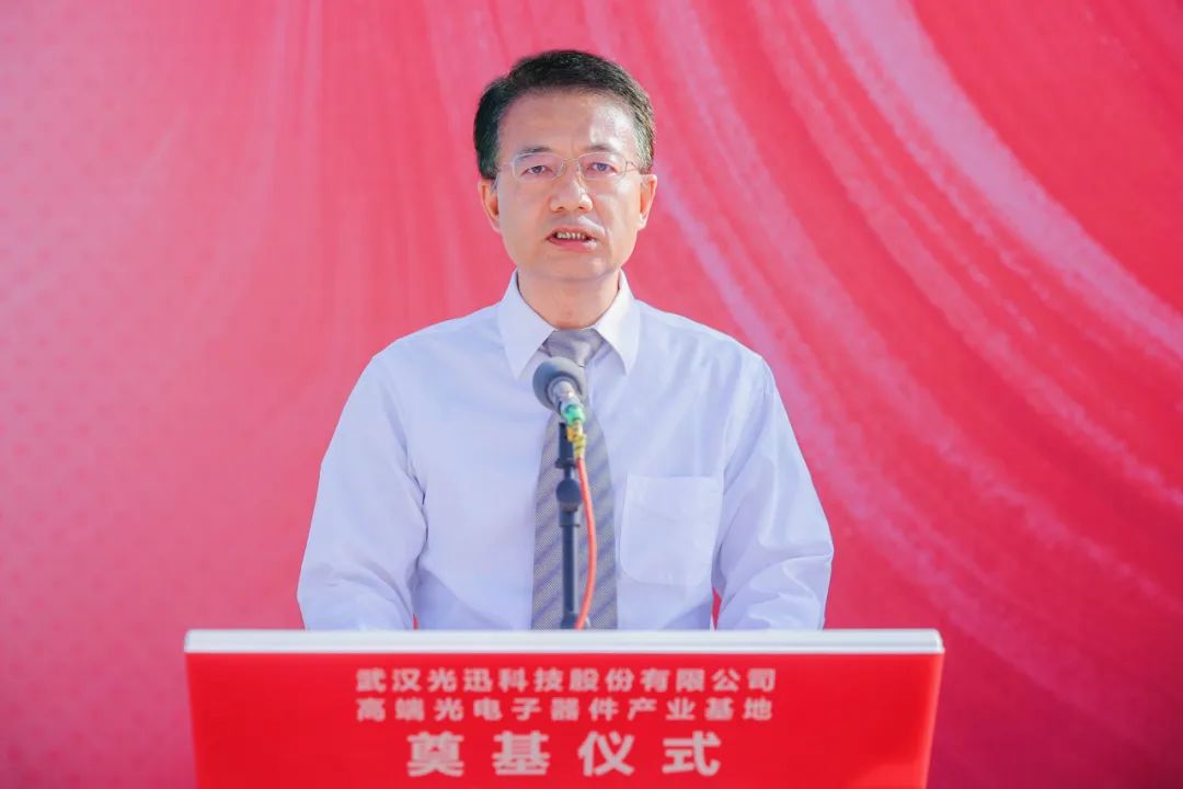 東湖新技術(shù)開發(fā)區(qū)管委會總工程師李世庭代表東湖高新區(qū)致辭。他表示當前東湖高新區(qū)正在全力建設(shè)湖北東湖科學城,努力打造光谷科創(chuàng)大走廊,加速構(gòu)建科技自立自強的創(chuàng)新矩陣。此次光迅科技高端光電子器件產(chǎn)業(yè)基地開工將為東湖綜保區(qū)發(fā)展提振信心,為東湖高新區(qū)光電子信息產(chǎn)業(yè)的高質(zhì)量發(fā)展形成新助力、新優(yōu)勢,并對項目的奠基表示熱烈祝賀。