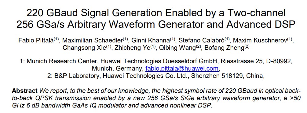 華為在ECOC2020(歐洲光纖通訊展覽會)發(fā)表的PDP論文