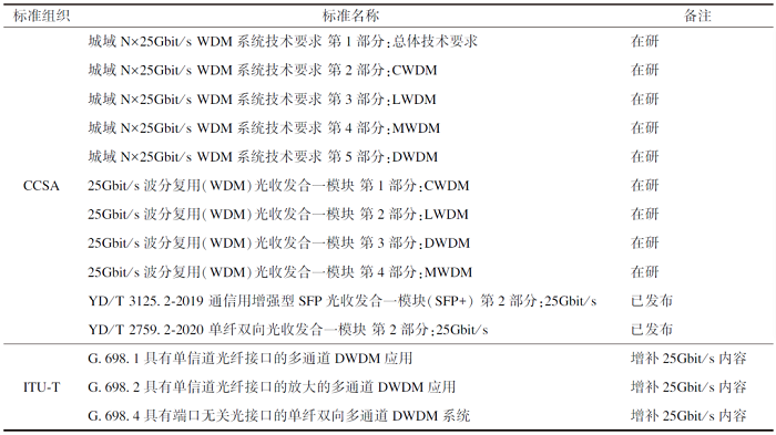 表2 N×25 Gbit/s WDM前傳設(shè)備及模塊相關(guān)標(biāo)準(zhǔn)化工作