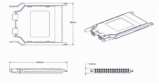 理論上在雙芯連接器和多芯連接器的整列排布方向上的間距尺寸可以達(dá)到陶瓷套筒外徑尺寸(陶瓷套筒外徑尺寸一般為1.62mm),但各陶瓷套筒之間需要被隔離,并且連接器對接的核心部件在適配器需要一定的浮動間隙,以具備更好的防側(cè)拉性能。