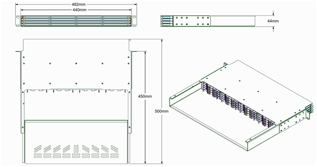 · 采用抽屜式結(jié)構(gòu)、每層可安裝4個轉(zhuǎn)接模塊,一共達(dá)4層。