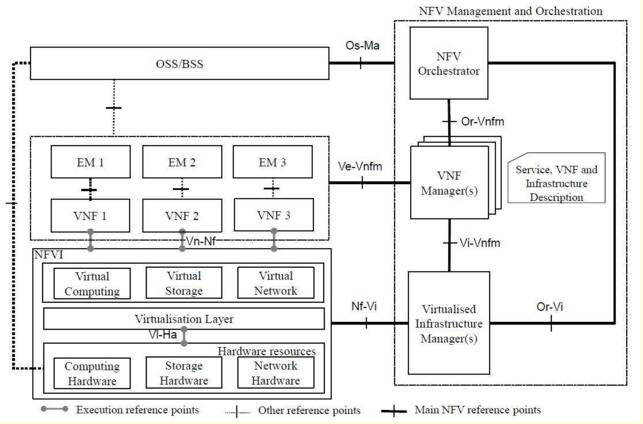 圖示:ETSI標(biāo)準中NFV架構(gòu)圖,開放性測試成為NFV大規(guī)模商用的前提條件