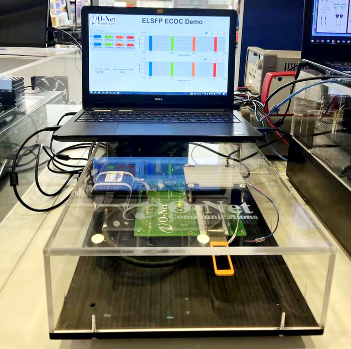 昂納科技在展會上成功演示了其自主研發(fā)的400ZR相干光模塊,以及基于光電共封架構(gòu)應(yīng)用的小尺寸可插拔的外部光源模塊(External Laser Small Form Factor Pluggable, 簡稱ELSFP)。