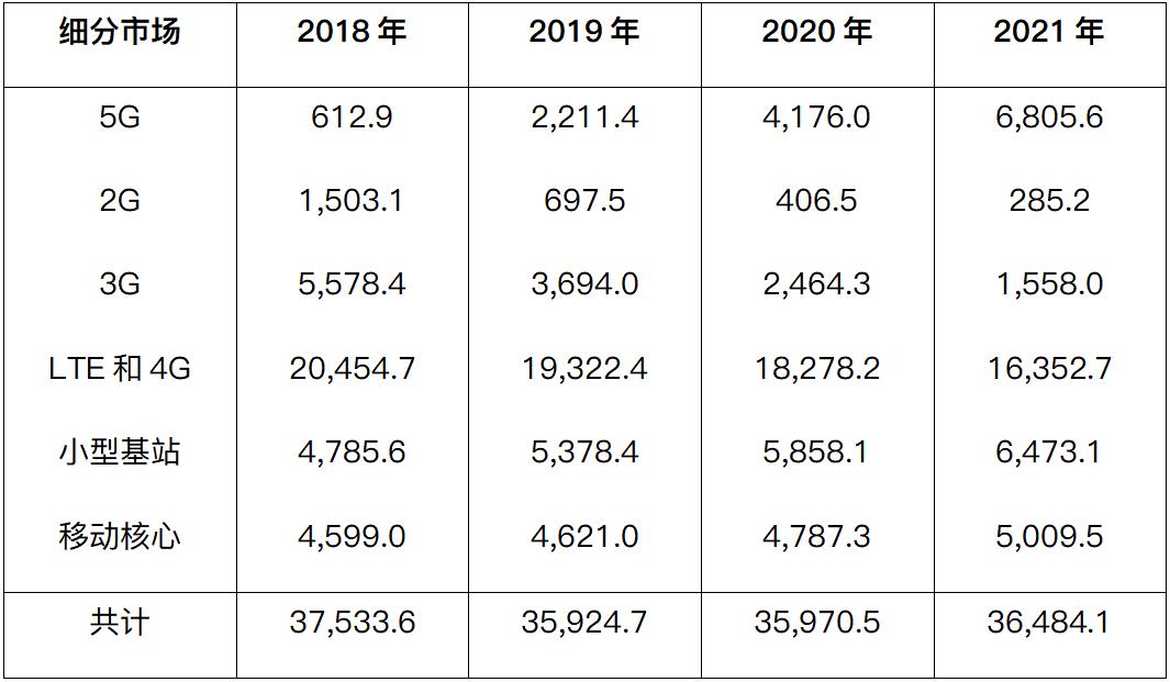 表一、2018年至2021年全球無線設(shè)備收入預(yù)測(cè)(單位:百萬美元)