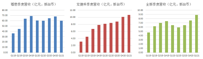 ICC訊(編輯:Nina)近日,砷化鎵廠4月?tīng)I(yíng)收出爐,受惠手機(jī)PA、WiFi需求回溫,穩(wěn)懋(3105-TW)單月?tīng)I(yíng)收重回20億元(新臺(tái)幣,下同)大關(guān),達(dá)20.24億元;全新(2455-TW)則因3月基期較高,單月?tīng)I(yíng)收月減15.44%,但仍改寫歷史第三高紀(jì)錄;宏捷科(8086-TW)營(yíng)收續(xù)創(chuàng)近64個(gè)月新高。