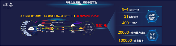 筑牢全光底座是為“東數(shù)西算”提供高品質(zhì)運力保障的關(guān)鍵基礎(chǔ)。中國聯(lián)通通過覆蓋升級、能力升級,將在2022年建成一張高品質(zhì)全域全光大網(wǎng),與已有的深度覆蓋的金融/政企精品網(wǎng),形成雙平面立體架構(gòu),打造算力時代全光底座。在覆蓋升級方面,完成5+4核心云池、31省級云池、超過400個MEC的100%全光覆蓋,實現(xiàn)算力之間的高品質(zhì)聯(lián)接;完成超過2萬個全光算力錨點,實現(xiàn)客戶內(nèi)部不同節(jié)點之間的高品質(zhì)互聯(lián)。