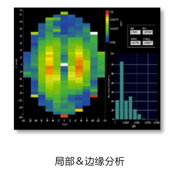 除了厚度測(cè)量和線輪廓分析外,還可以統(tǒng)計(jì)分析符合SEMI標(biāo)準(zhǔn)的平整度參數(shù),并可以以任意形式顯示和輸出數(shù)據(jù)。另外,可以解析指定的2片晶圓的厚度差異,便于監(jiān)測(cè)拋光過(guò)程。