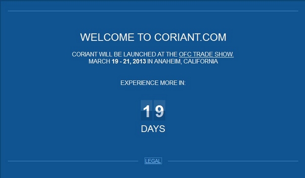 Coriant還提供了一個簡易網(wǎng)頁---www.coriant.com---宣布該公司將宣布一個更好的網(wǎng)站。這個簡易網(wǎng)頁上還提供OFC/NFOEC倒計時。