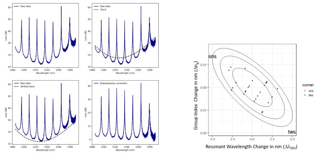 圖三. 左:用于分析和緊湊建模的數(shù)據(jù)處理,右:波導(dǎo)的統(tǒng)計(jì)和角落模型說明。(來源:AIM Photonics)