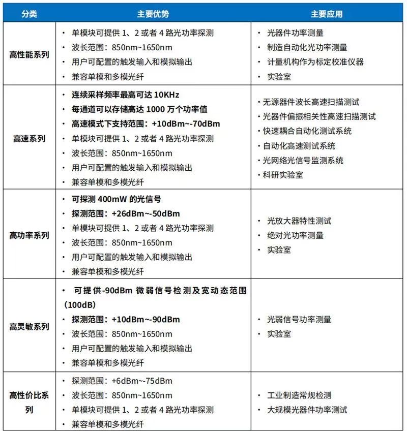 5大系列分別為:高性能系列、高速系列、高功率系列、高靈敏度系列以及高性價比系列。