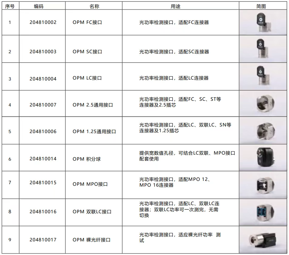 為了方便用戶使用,維度科技開發(fā)設計了豐富的可互換探測器適配器接頭,可用于各種連接器類型,并配有允許進行裸光纖測量的光纖夾持器。