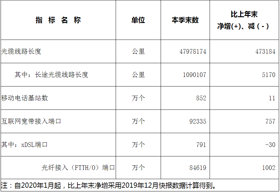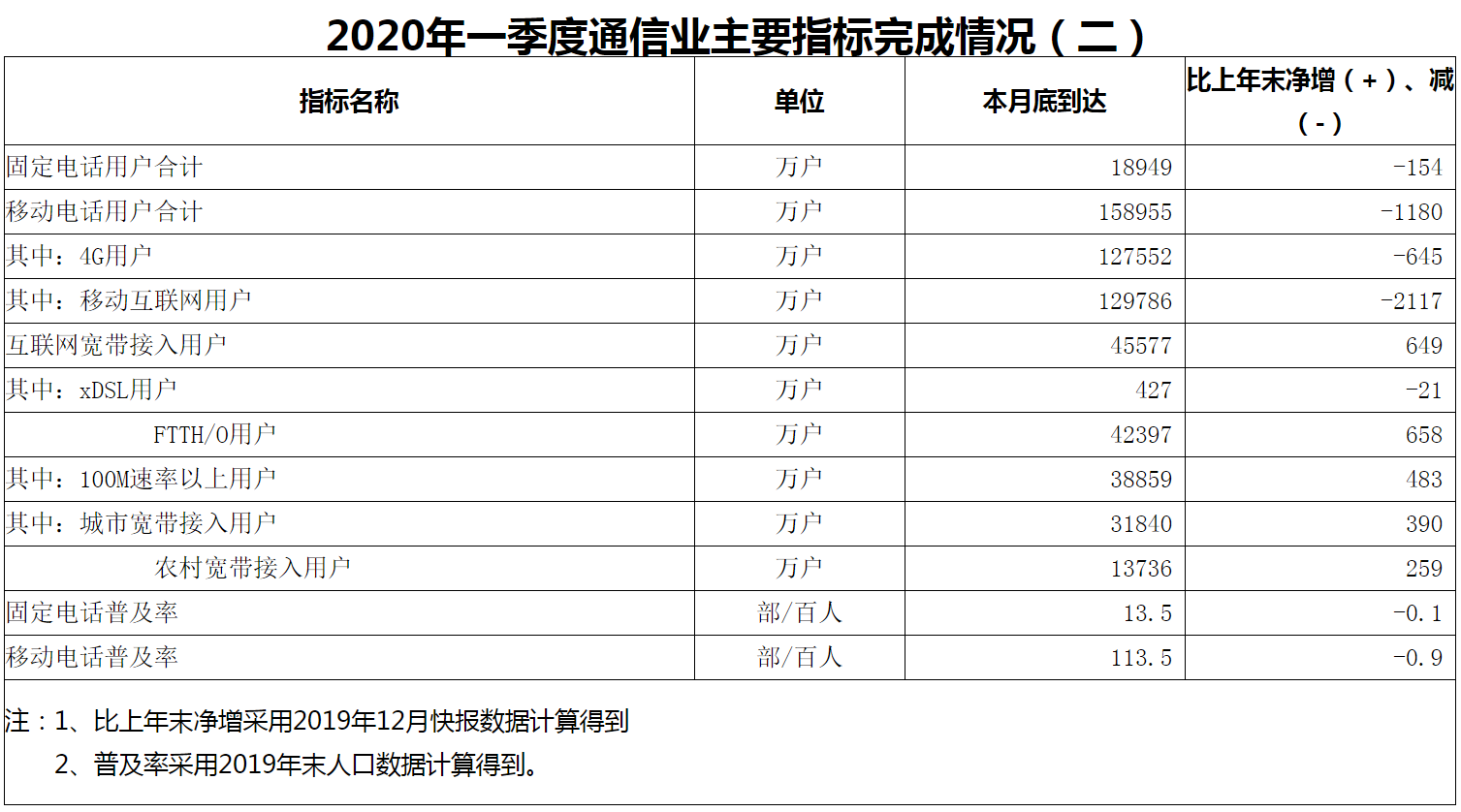 固定電話用戶、移動電話用戶、4G用戶、移動互聯(lián)網(wǎng)用戶較上年末均有下降。寬帶接入用戶有小幅上升,其中xDSL用戶同比下降21萬戶,F(xiàn)TTH/0用戶比上年末凈增658萬戶,100M速率以上用戶凈增483萬戶。