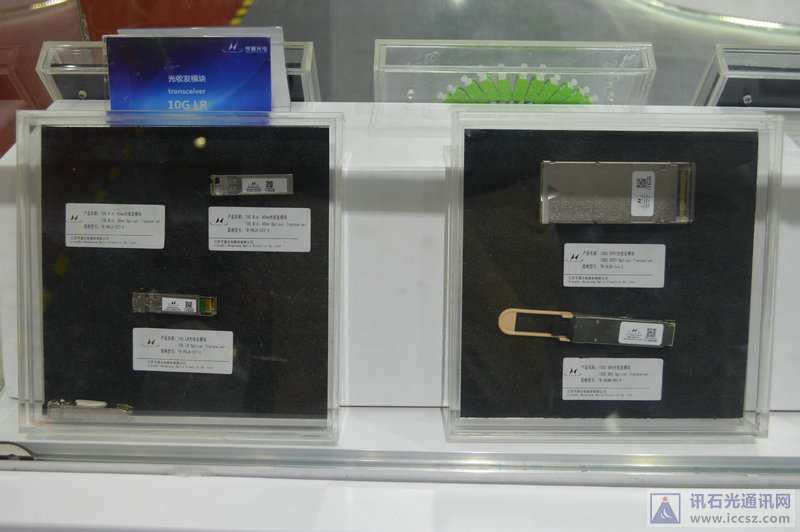 光器件方面,史總向訊石介紹亨通光電主推綠色節(jié)能模塊產(chǎn)品,尤其是用于數(shù)據(jù)中心的光器件,可降低能源損耗。今年亨通光電光器件一大亮點(diǎn)是展出了100G光模塊,有100G SR4和100G CFP2兩款Transceiver,還展出了10G LR和10G bidi Transceiver。