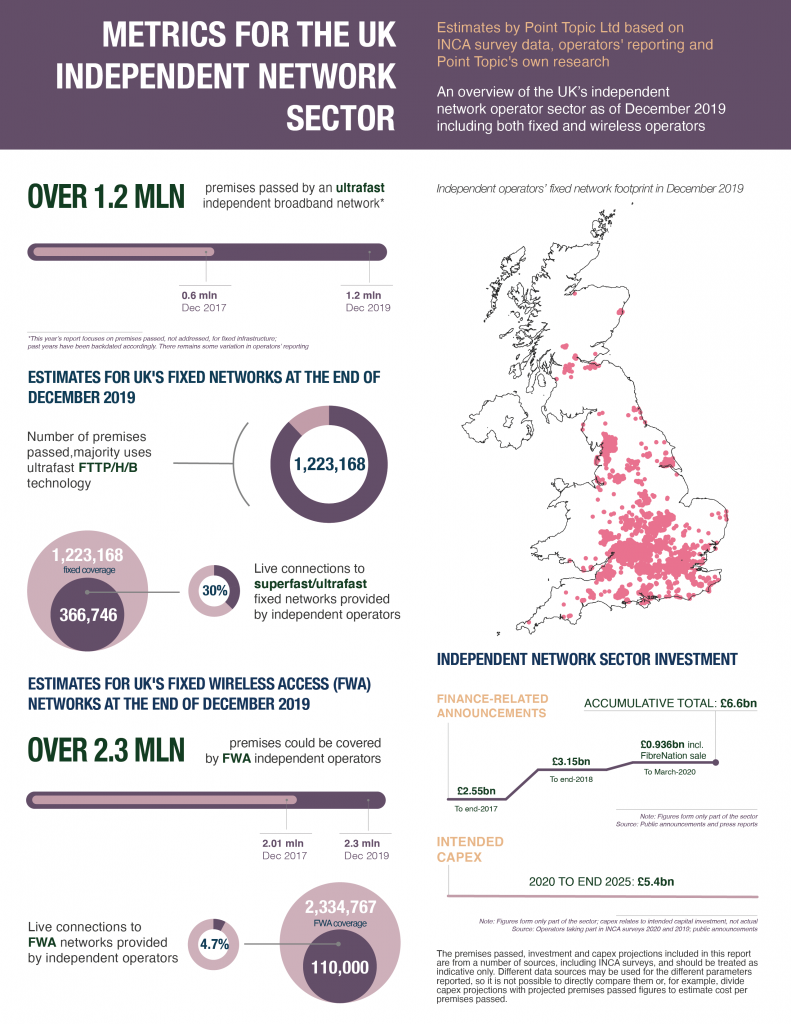 ICC訊(編譯:Vicki)Point Topic已為INCA提供了一份報告,以規(guī)模,覆蓋范圍,目標(biāo)和關(guān)注點為重點,概述了截至2019年底和2020年初英國的獨立網(wǎng)絡(luò)運營商部門部署寬帶的情況。