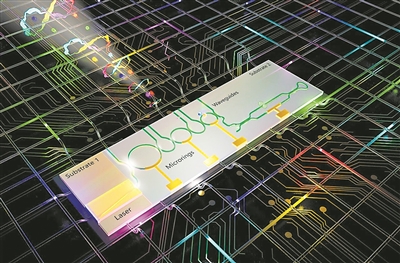 庫斯團(tuán)隊(duì)借助“混合技術(shù)”,將磷化銦制成的激光器、濾波器和氮化硅制成的空腔結(jié)合在一起,并將它們集成到了一塊芯片上。在芯片上,在一個(gè)自發(fā)的非線性過程中,激光場產(chǎn)生了兩個(gè)光子。每個(gè)光子同時(shí)“跨越”一系列顏色,這被稱為“疊加”,且兩個(gè)光子的顏色相互關(guān)聯(lián),即發(fā)生了“糾纏”,可存儲(chǔ)量子信息。