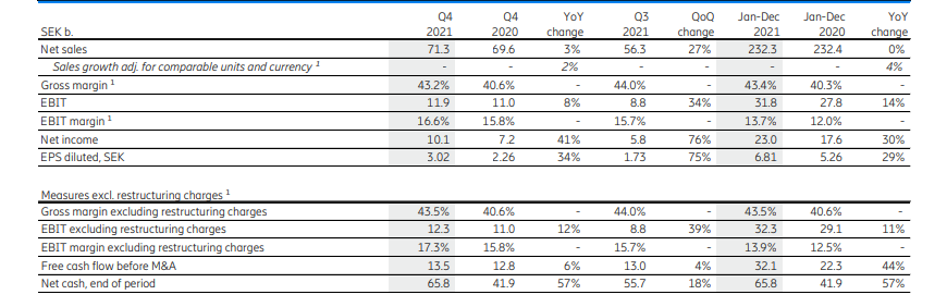 ICC訊(編譯:Vicki)通信設(shè)備及解決方案提供商愛立信公布了2021年全年及2021年第四季度財(cái)務(wù)業(yè)績。