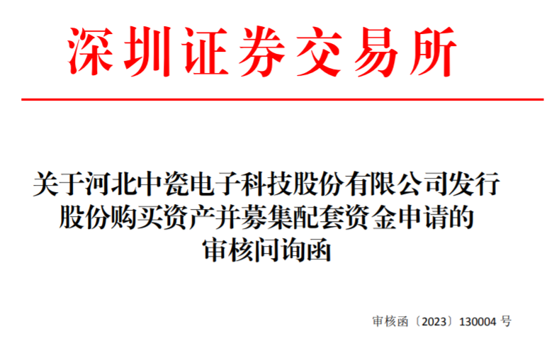 ICC訊  深交所4月6日下發(fā)關(guān)于對(duì)中瓷電子申請(qǐng)發(fā)行股份購(gòu)買(mǎi)資產(chǎn)并募集配套資金的審核問(wèn)詢(xún)函。