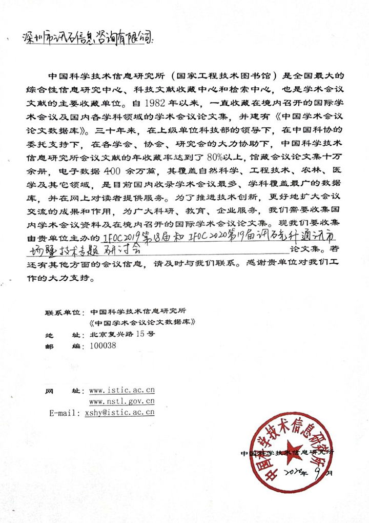 ICC訊(編輯:Cecilia) 2020年9月,中國(guó)科學(xué)技術(shù)信息研究所(國(guó)家工程技術(shù)圖書館)正式將IFOC 第18屆、第19屆《訊石光纖通訊市場(chǎng)暨技術(shù)專題研討會(huì)論文集》納入館藏。