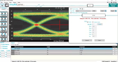 ML4025擁有FFE、CTLE和DFE等數(shù)據(jù)模擬均衡的功能和加去嵌能力,這可重現(xiàn)Source端training和Sink端的CTLE最佳值。同時,可根據(jù)HDMI的規(guī)范定義HDMI眼圖測試模板,了解相關(guān)的眼圖參數(shù)和余量,5秒內(nèi)完成一根HDMI的高速測量。
