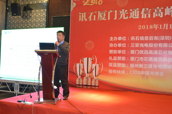 隨后,廈門(mén)優(yōu)迅高速芯片有限公司董事長(zhǎng)柯炳粦為論壇致辭,他首先肯定了訊石的辦會(huì)精神,也對(duì)大家前來(lái)參會(huì)表達(dá)了熱烈的歡迎!柯董說(shuō)道,廈門(mén)經(jīng)過(guò)“金磚峰會(huì)”的洗禮,已煥然一新、滿園春色!也祝愿光通信行業(yè)同樣“滿園春色”!對(duì)于廈門(mén)的集成電路發(fā)展,短短兩個(gè)月廈門(mén)便建成500億的產(chǎn)業(yè)基金!各行各業(yè)的龍頭也跨入了集成電路的懷抱,隨著政策一再利好,優(yōu)迅也如沐春風(fēng),得益廈門(mén)的集成電路產(chǎn)業(yè)發(fā)展,現(xiàn)在可以很自豪地說(shuō)“已經(jīng)打造了中國(guó)品牌、中國(guó)芯”,站在國(guó)際大舞臺(tái)上也毫不遜色!相信最后可以跟大家一起為國(guó)家信息安全作出更大貢獻(xiàn)!最后祝愿大會(huì)圓滿成功!