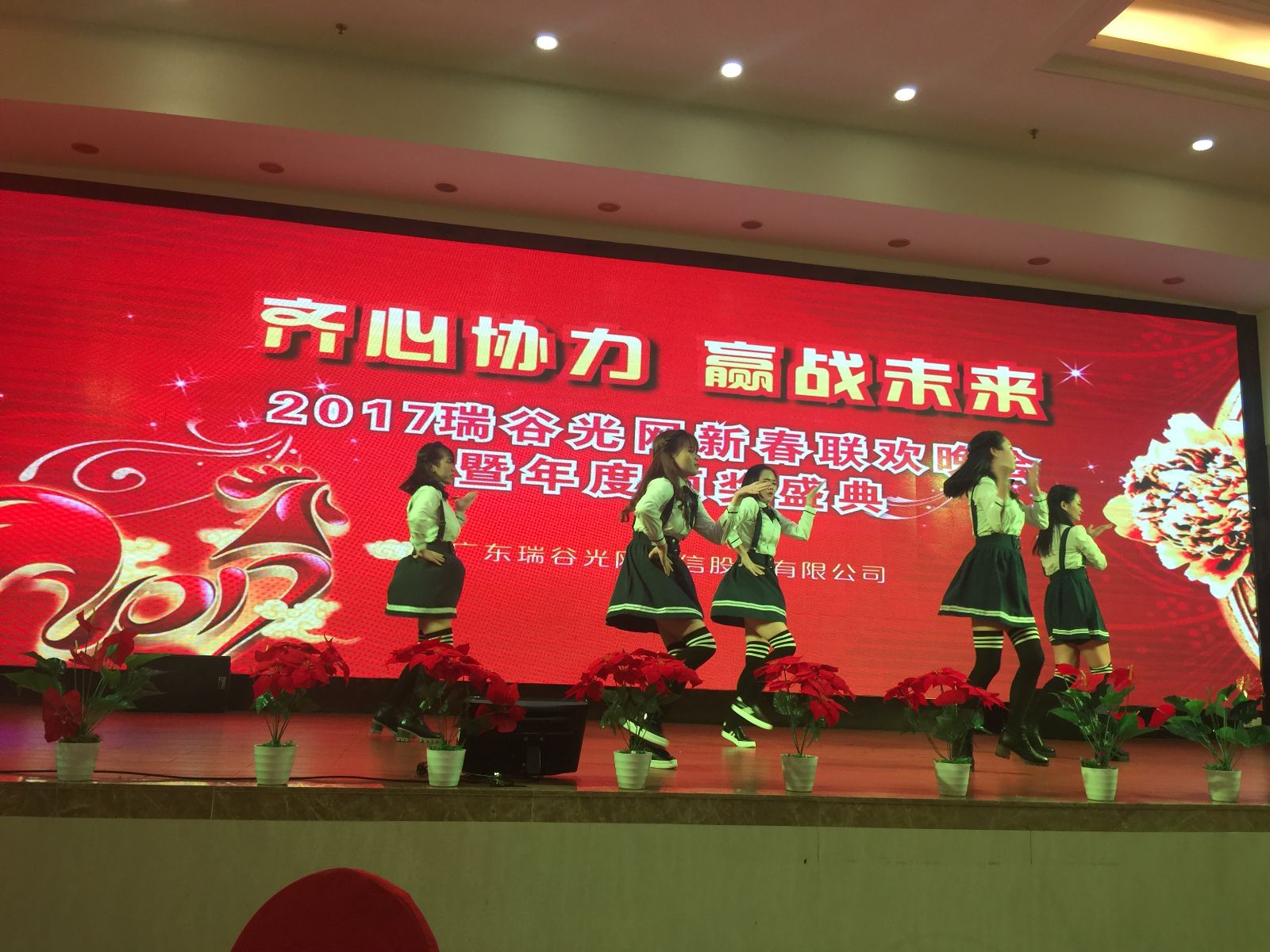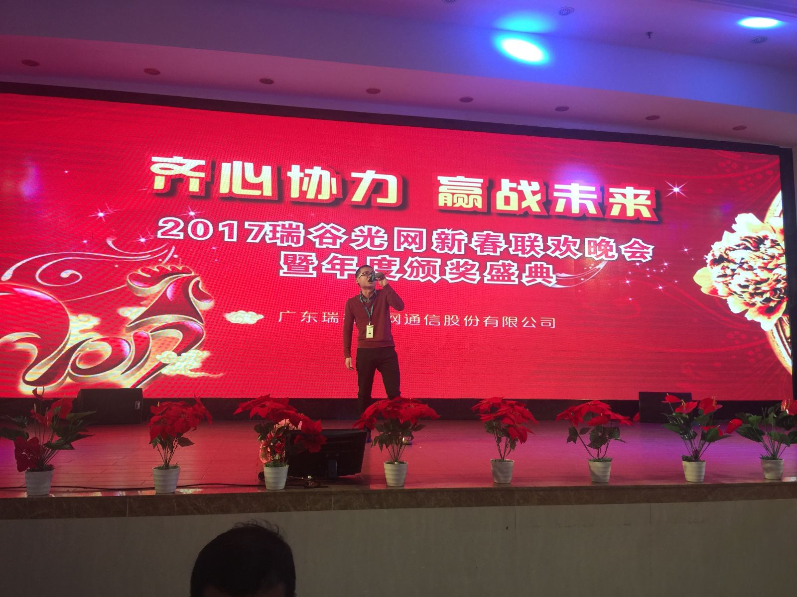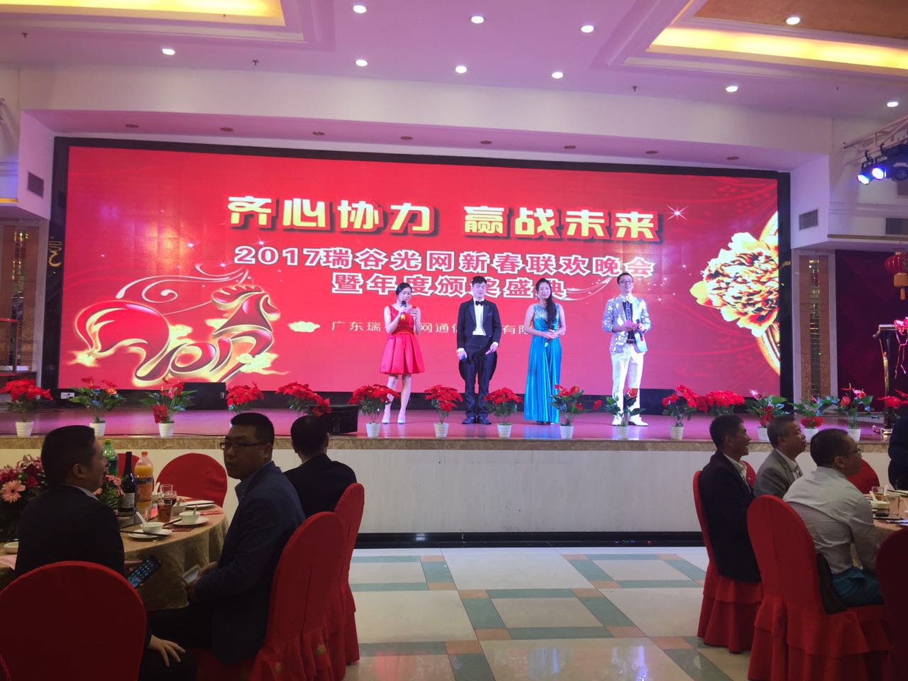 ICCSZ訊(編輯:Green)辭舊迎新,2016年畫上圓滿的句號(hào),2017年伊始。在新的一年里,瑞谷光網(wǎng)回首過往,規(guī)劃展望2017。1月11日晚18時(shí)30分廣東瑞谷光網(wǎng)通信股份有限公司“2017年新春聯(lián)歡晚會(huì)暨年度頒獎(jiǎng)盛典”在東莞福湖酒店隆重舉辦(以下簡(jiǎn)稱‘瑞谷光網(wǎng)’)。瑞谷管理層,海外嘉賓,基層員工、客戶供應(yīng)商出席晚會(huì),共襄盛舉?,F(xiàn)場(chǎng)高朋滿座,熱鬧非凡。訊石應(yīng)邀參加盛會(huì),目睹了瑞谷光網(wǎng)4年來的輝煌成長(zhǎng)歷程。同時(shí),訊石也在此祝賀瑞谷光網(wǎng)越走越好,2017年大展宏圖。