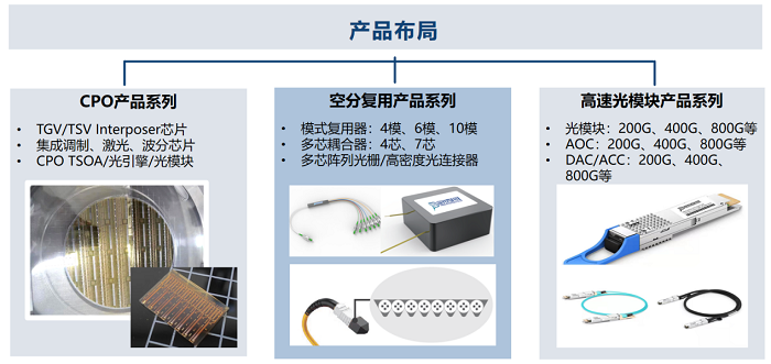 深圳市深光谷科技有限公司主要開(kāi)發(fā)面向AI算力集群、數(shù)據(jù)中心、5G通信的高密度、低功耗、大容量光通信產(chǎn)品,以CPO光電Interposer芯片的自主工藝制造和先進(jìn)封裝應(yīng)用為核心,打造玻璃基CPO雙賽道技術(shù)底座,賦能智算集群光互連應(yīng)用,致力于成為玻璃基CPO上游領(lǐng)域的全球領(lǐng)先企業(yè)。核心技術(shù)及產(chǎn)品包括晶圓級(jí)玻璃基interposer芯片的設(shè)計(jì)與制造,以及CPO封裝工藝、三維光子互聯(lián)波導(dǎo)芯片:高速光引擎及連接器、空分復(fù)用器件等。