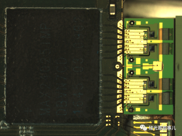 下圖中部那顆黑色的,橫跨整個(gè)模塊的芯片便是PLC芯片,Mux和Demux單片集成,