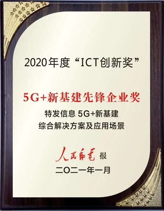 ICC訊 近日,2020年度《人民郵電》“ICT創(chuàng)新獎(jiǎng)“評(píng)選名單正式揭曉,特發(fā)信息憑借在5G及新基建領(lǐng)域中的突出成績(jī),實(shí)力斬獲“5G+新基建先鋒企業(yè)”獎(jiǎng)。本次評(píng)選匯集眾多行業(yè)專家,經(jīng)初評(píng)、澄清材料和總評(píng)三個(gè)階段,最終確定獲獎(jiǎng)名單,充分展現(xiàn)了2020年我國(guó)信息通信行業(yè)發(fā)展的閃光點(diǎn)。