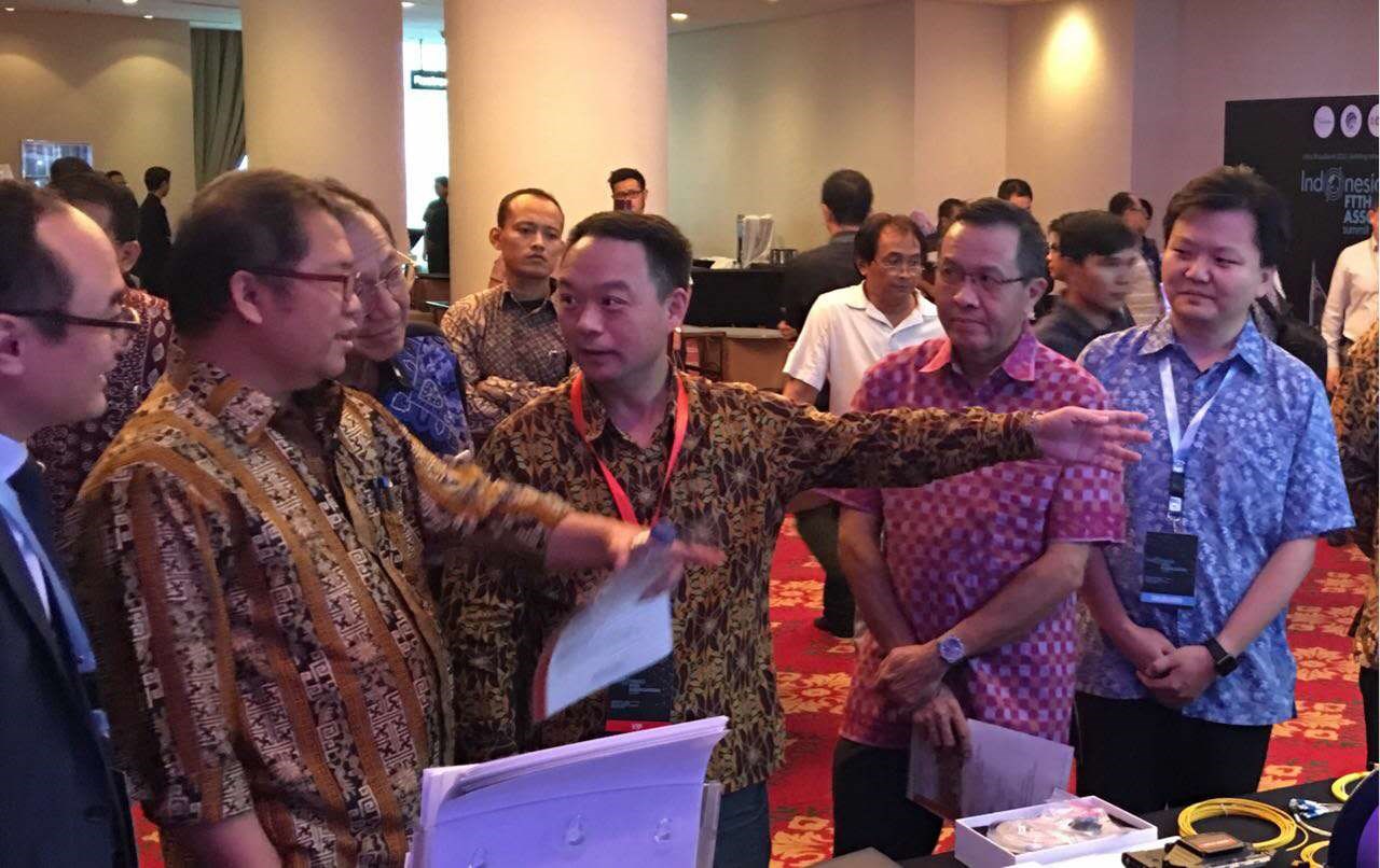 長飛印尼公司攜長飛光纖光纜股份有限公司(股票代號:6869.HK 以下簡稱“長飛公司”)光纖產(chǎn)品、FTTH產(chǎn)品及解決方案、AOC光纜解決方案及氣吹微纜解決方案等產(chǎn)品亮相此次印尼FTTH聯(lián)盟成立大會,吸引了包括印尼通信部長Rudiantara、印尼通信協(xié)會會長Krisiono 在內(nèi)的印尼通信界官員及當(dāng)?shù)仉娦胚\營商和大批專業(yè)觀眾前來參觀,現(xiàn)場氣氛活躍。