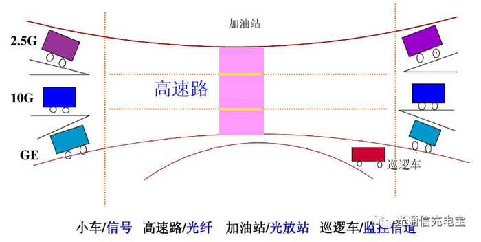 如果說WDM的本質(zhì)是頻分復(fù)用(FDM),可能還是不好理解,不如用圖2的多車道的高速公路來類比WDM系統(tǒng)好了。