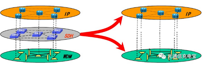 圖5. IP over WDM網(wǎng)絡(luò)架構(gòu)轉(zhuǎn)變