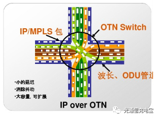 光傳送網(wǎng)(OTN),可以簡單的理解為OTN是將SDH 強(qiáng)大完善的OAM的理念和功能移植到了WDM 光網(wǎng)絡(luò)中。具體來講,OTN是一種通過引入電域子層,為客戶信號提供在波長/子波長上進(jìn)行傳送、復(fù)用、交換、監(jiān)控和保護(hù)恢復(fù)的技術(shù)。同時(shí)在電層逐步Packet化,實(shí)現(xiàn)基于包、VC以及ODUk交叉的功能實(shí)體。事實(shí)上,OTN的物理基礎(chǔ)在鏈路上還是依賴于WDM技術(shù)了,又像SDH那樣引入封裝和開銷管理,提高管理和互通能力,對波長/子波長進(jìn)行交叉連接提高組網(wǎng)、保護(hù)和調(diào)度能力。簡言之,OTN其實(shí)就是IP化的WDM再加上光、電交叉功能,更多強(qiáng)調(diào)的是一種節(jié)點(diǎn)技術(shù),如下圖所示。