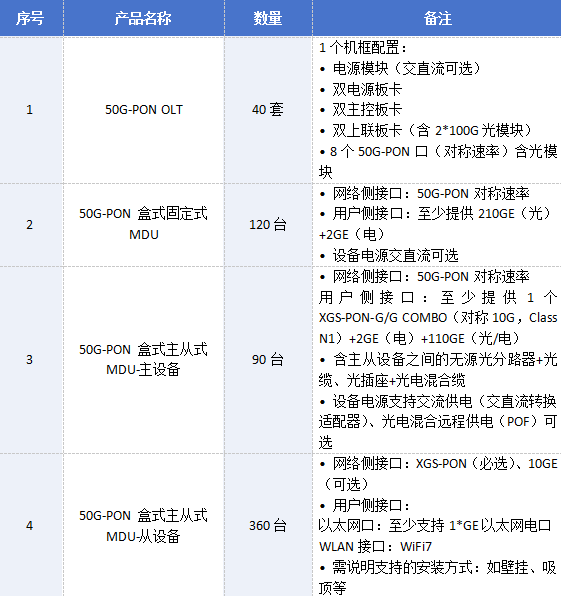50G-PON OLT設(shè)備:最高限價156,000元/套(不含稅)