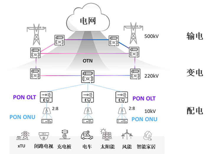 圖3:展示了POL網(wǎng)絡(luò)架構(gòu)及PON設(shè)備在整張電網(wǎng)中的位置。