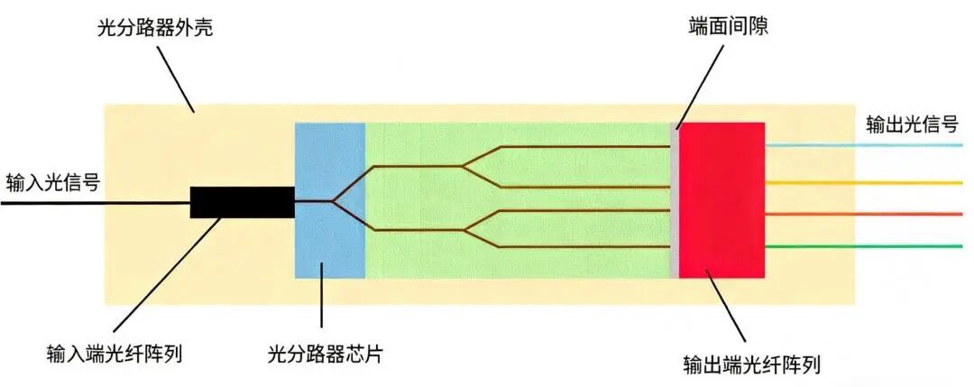 PLC分路器的核心功能是功率分配。其基本原理是利用嵌入在芯片中的通道波導(dǎo),讓光在傳輸過程中經(jīng)過特定的分支結(jié)構(gòu),將光能量從一個波導(dǎo)均勻地分配到多個波導(dǎo)中。