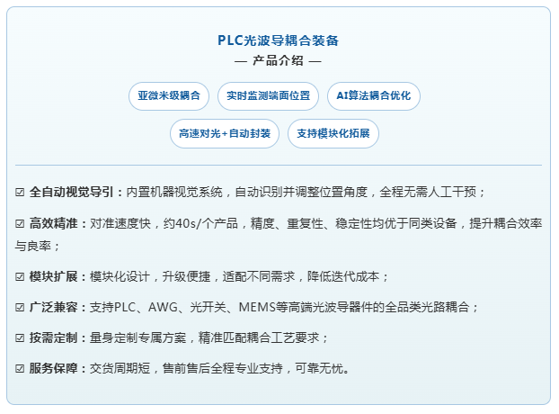 針對這一趨勢,形識智能推出了專為光通信核心器件(PLC/AWG 等)打造的高精度、智能化光波導(dǎo)耦合與封裝裝備——PLC光波導(dǎo)耦合裝備。