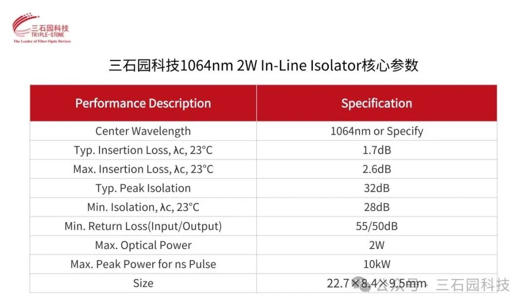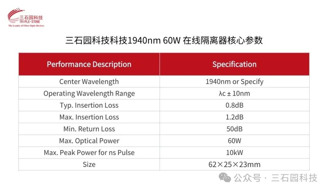 三石園科技1940nm 60W隔離器,具備醫(yī)療級高功率處理能力,可在高功率激光環(huán)境下長期穩(wěn)定工作,為醫(yī)療激光治療(如外科手術(shù)、溶脂)、材料加工及科研級高功率激光源提供關(guān)鍵保護(hù),小型化封裝設(shè)計(jì),低損耗,高耐受功率,穩(wěn)定可靠。