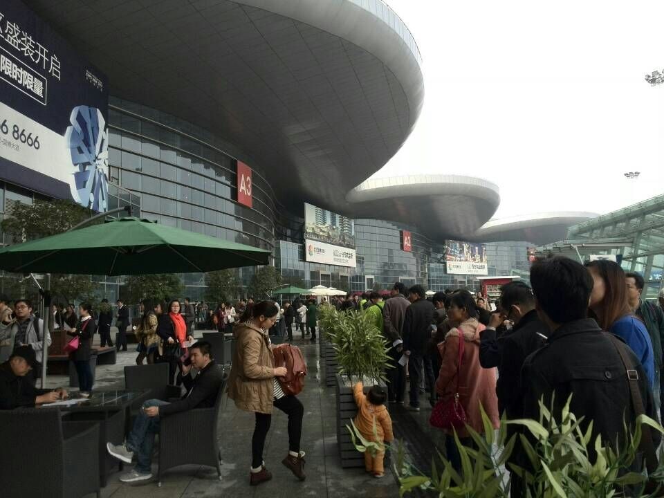 場外排隊領(lǐng)參展牌的隊伍
