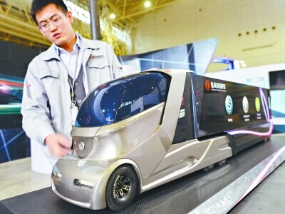 長1.56米,高0.38米,兩側(cè)各5個車輪,東風商用的一款智能概念重卡模型不需要燃料,靠磁場就可無線充電。